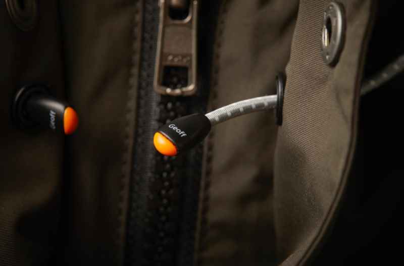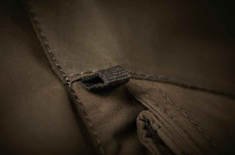 Přední část bundy Geoff Anderson Raptor 6 obsahuje dvě velké náprsní kapsy, které se těsně zavírají a chrání obsah před deštěm a vlhkostí. Ideální pro ukládání krabiček s nástrahami nebo pro nástroje, které potřebujete mít po ruce. Také na přední straně je malá upevňovací smyčka ideální pro osazení rybářského peanu nebo kleští. Napoleonská kapsa (vnitřní kapsa), kterou lze ovládat bez rozepínání bundy. Na zadní straně se nachází prostorná kapsa do které se vejde mapa, láhev s vodou nebo jiné potřebné příslušenství. Robustní zip je chráněn dvojitým překrytím na suchý zip a nerezovými knoflíčky.