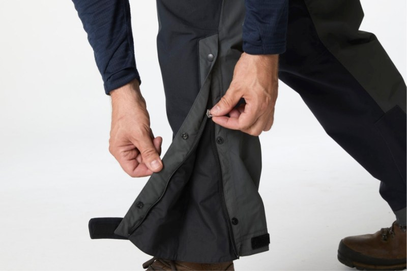 - Až 35cm spodní boční otevírací voděodolný zip na vysokou obuv. Kalhota se rozšíří na navlečení obuvi.