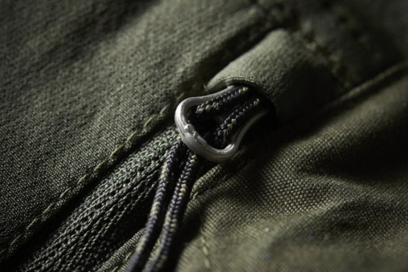 Elastický pás výborně sedne pro každý typ postavy, ale také disponuje poutky pro opasek a extra poutkem na nářadí. Kapes je více než dost, dvě šikmé kapsy, jedna kapsa na mince/klíč od auta se zipem YKK, jedna boční kapsa se zipem YKK a jedna zasdná kapsa také osazena odolným zipem YKK.