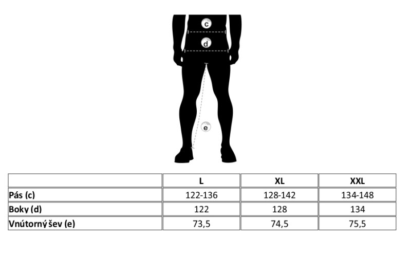 - Velikosti L, XL, XXL dostupné ve dvou délkách.
