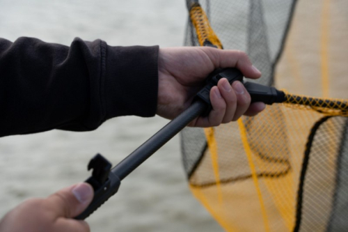 Teleskopická rukojeť podběráku s lehkým uhlíkovým rámem a pogumovanou sítí nabízí flexibilní, pohodlné a rybám šetrné použití ze břehu, mola nebo lodě.