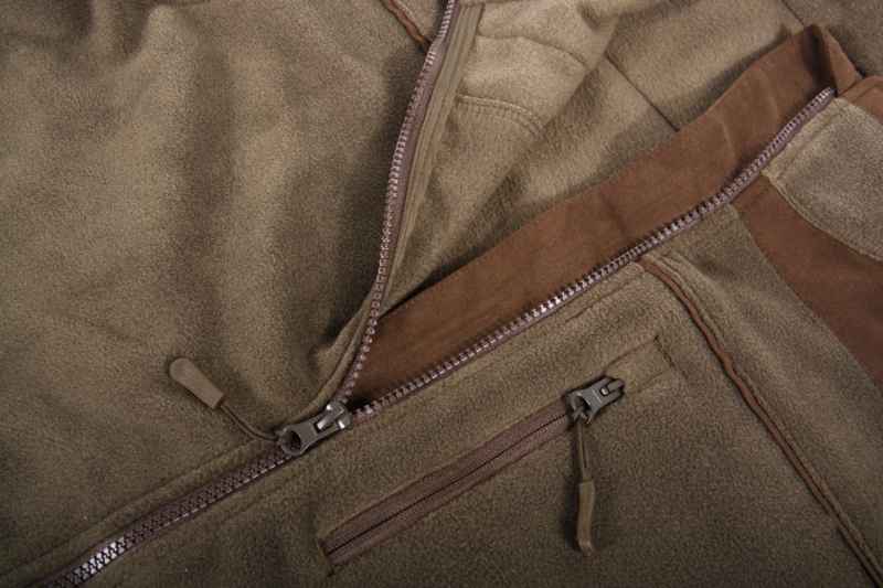 Rybářská mikina se zipem SPORTS je vyrobena ze 100% polyesteru. Velmi dobře drží teplo a je příjemná na dotek. Zvýšený límec chrání krk před chladem a větrem. Mikina je kombinovaná s imitací hnědého semiše na ramenou, loktech a bočních kapsách s vysokou otěru odolností. Fleesový materiál je s funkcí anti peeling, což znamená že se nežmolí a neztrácí vlákna. Kapsy jsou osazeny kvalitním a odolným zipem, který se jednoduše otevírá směrem dolů. Rybářská mikina se zipem SPORTS je mírně vodě odolná, takže při jemném mrholení nebo sněžení zůstanete v teple a suchu. Dostupné velikosti (M, L, XL).