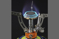 Outdoorový vařič na propan-butan, pro ohřívání a přípravu pokrmů na cestách, v kempu apod.